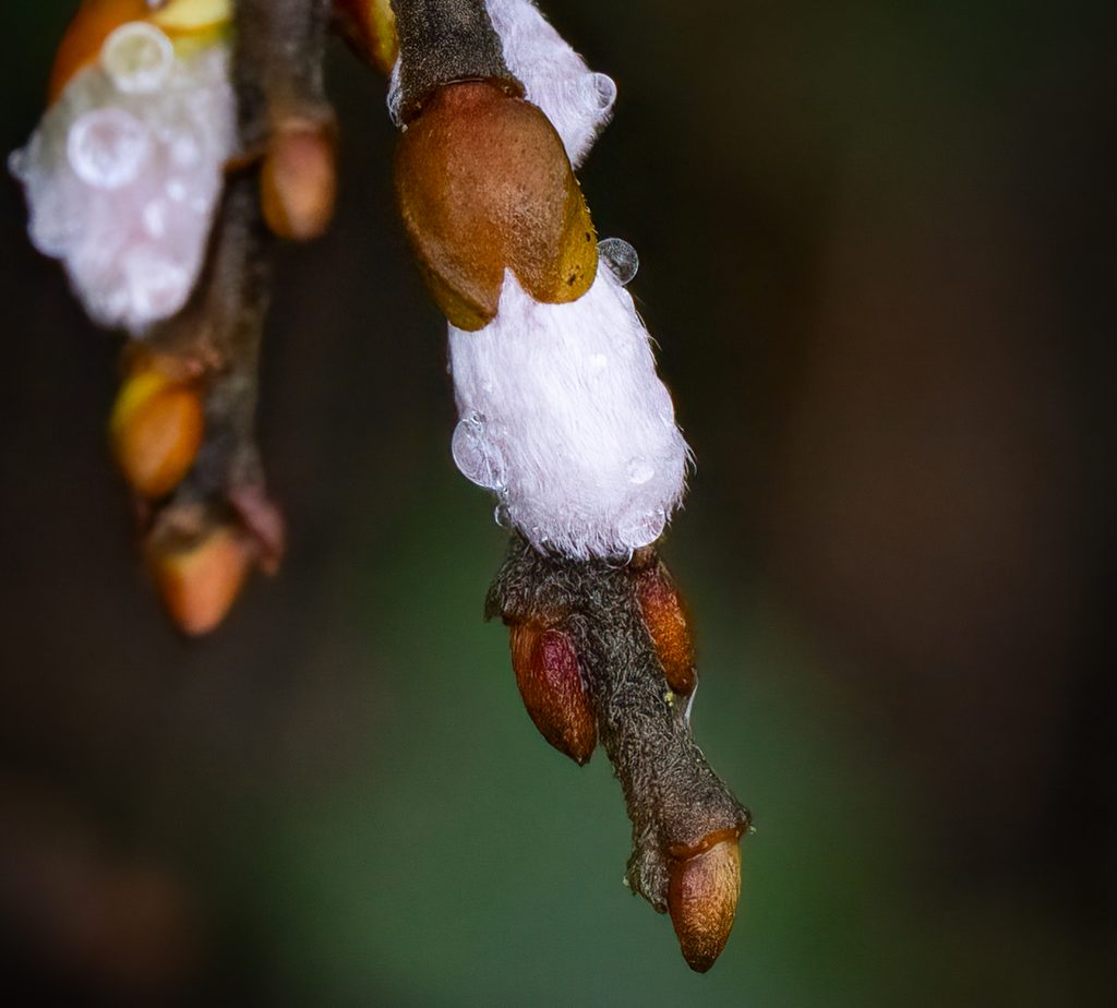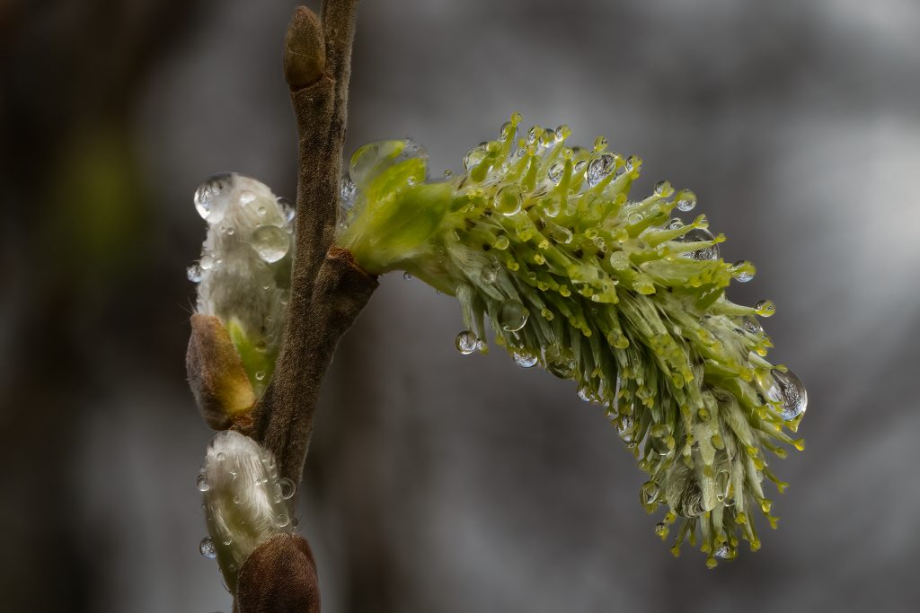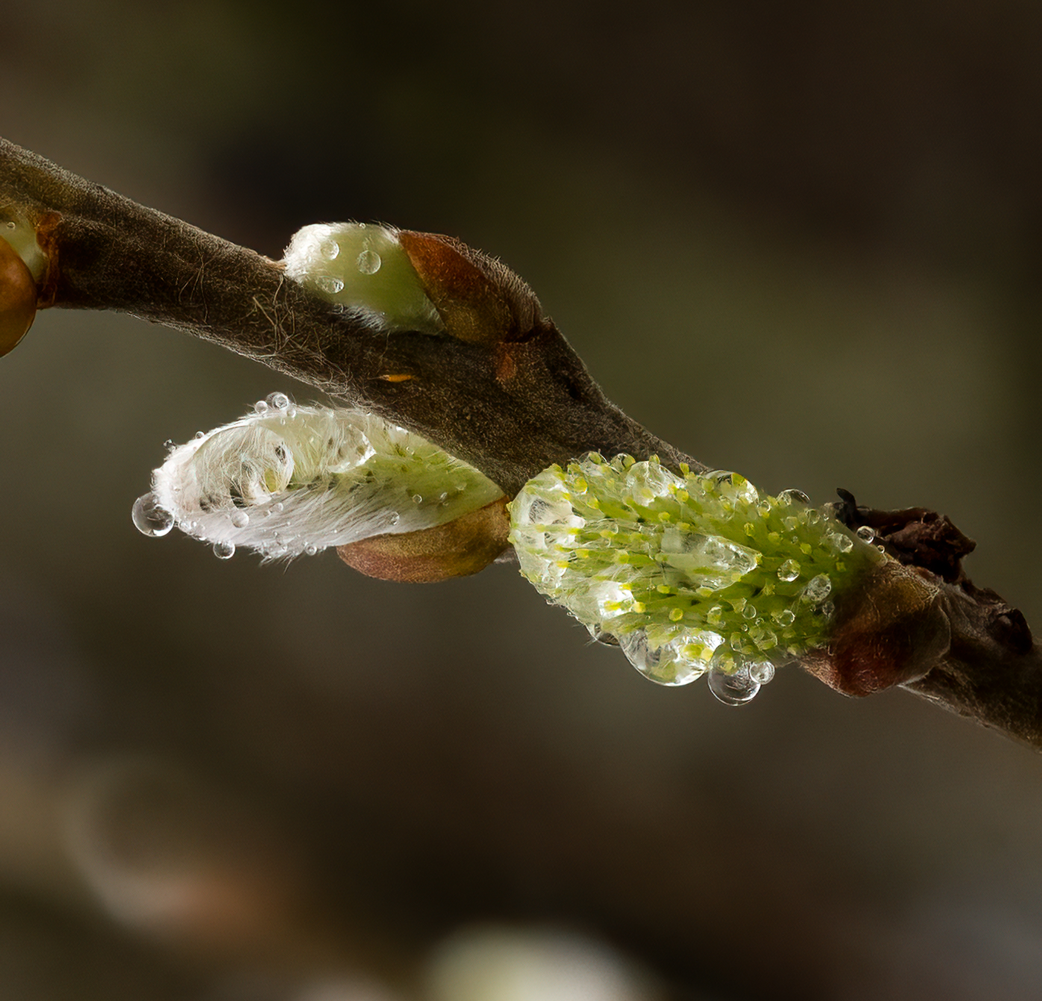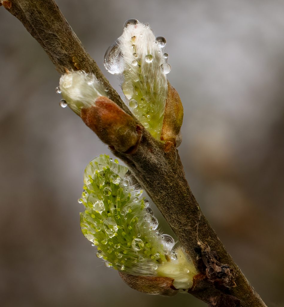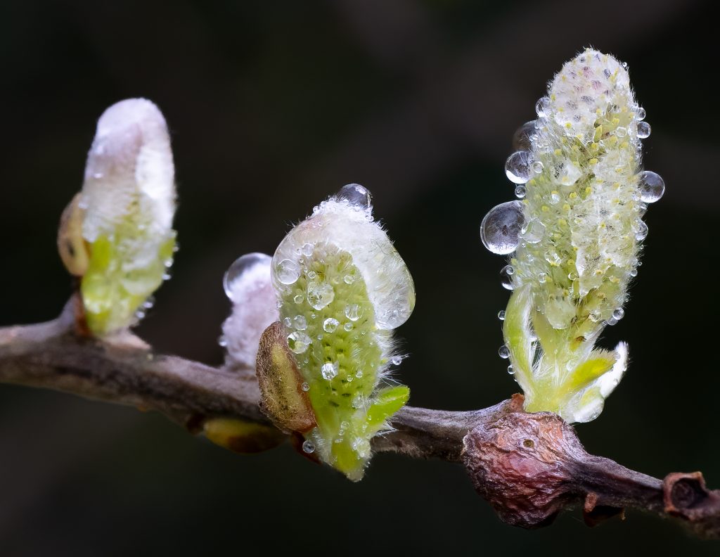 Whilst here in Somerset water is not our favourite word at the moment due to the considerable amount of rain we have had over the last couple of months, it can show itself in spectacular forms.  These images are of the silky white catkins starting to emerge from the Goat Willow (Salix Caprea) covered with water droplets.