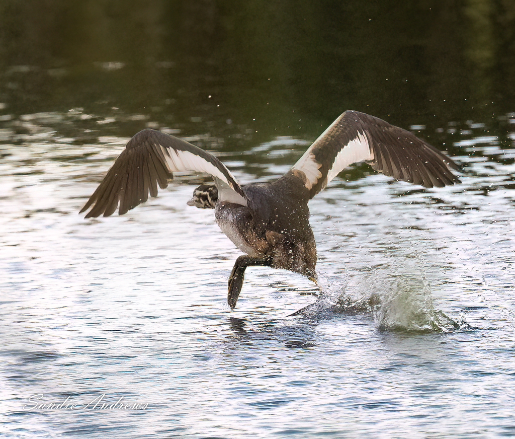 The last in this sequence is of a juvenile great crested grebe possibly on its first or one of its first flights. It was very early one morning and I was sitting in Tor View Hide. I watched as a parent and a juvenile swam together towards the hide and looked down the long waterway, or should I say runway, to the west. The juvenile looked around a bit more, checking, maybe a bit apprehensive, then its parent took off and flew low along the waterway. The chick followed – not quite breaking clear of the water as quickly as its parent had, then it was up and flying. Not very high and not for very long but the first steps are always the biggest. Fabulous to watch.