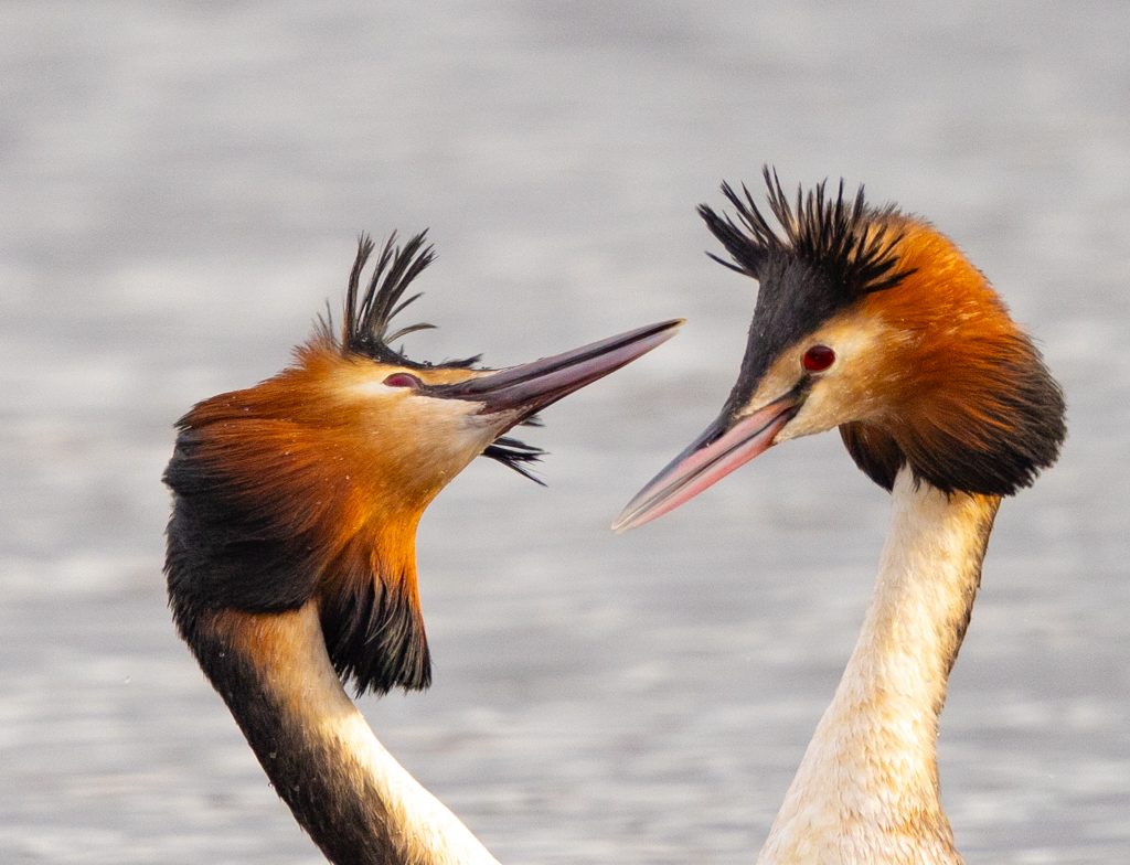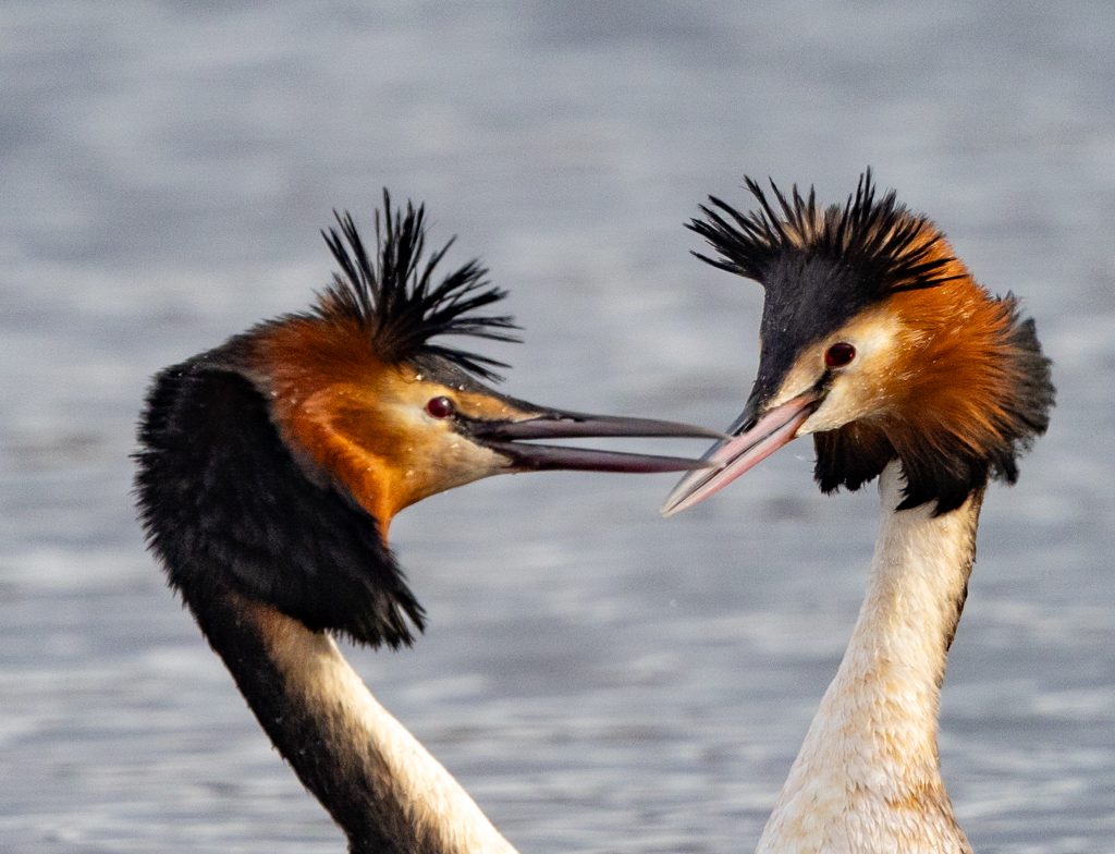 What’s not to love about the great crested grebe. Not only are they photogenic but they live their lives on the open water, where they can be observed, photographed and admired. Their displays of affection and their mating rituals are sublime. The calmess and serenity with which they teach their young life skills is moving.