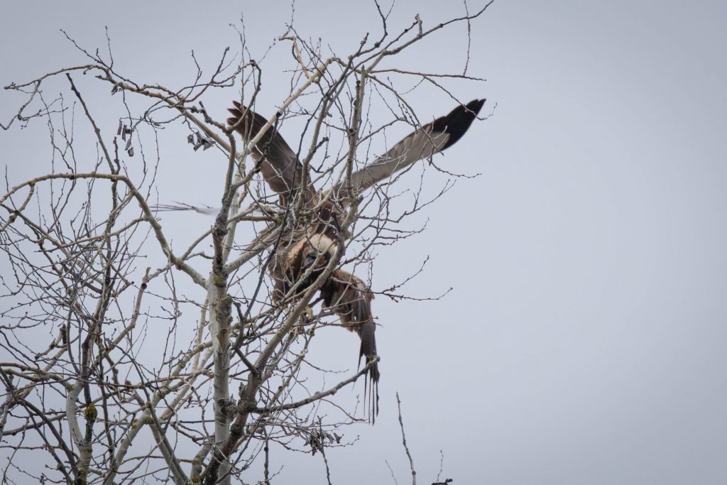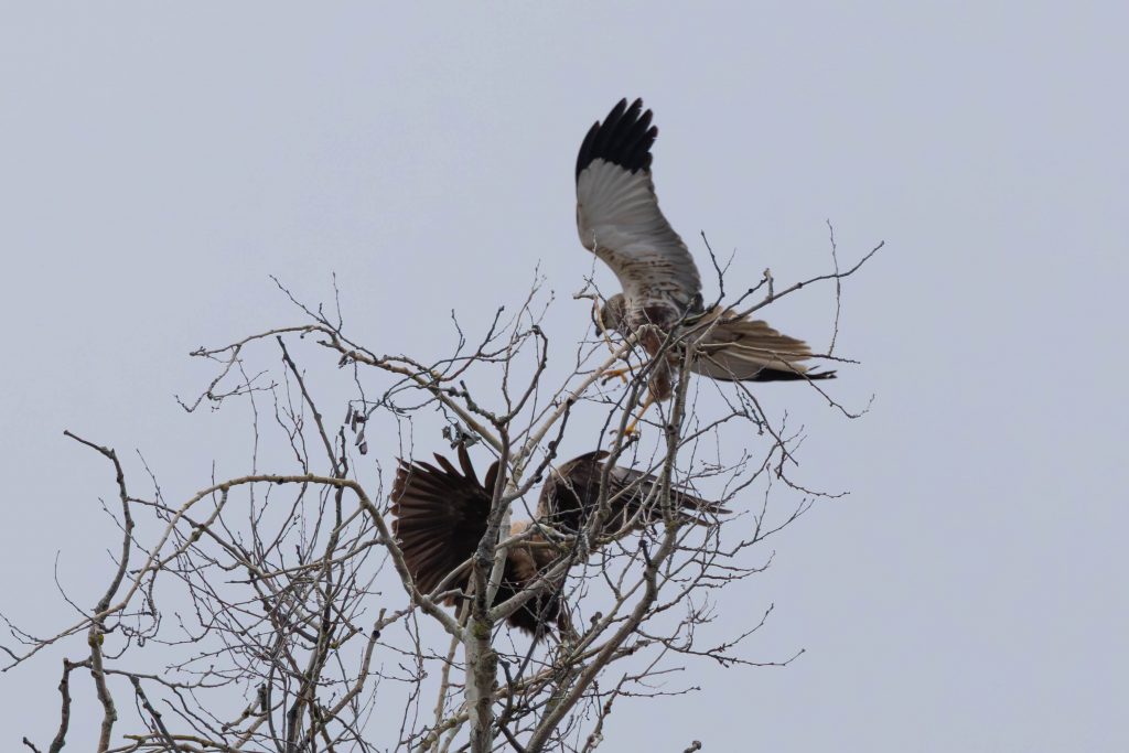 The female flies into view close to the hide, then the male glides in from the other direction. They sky dance, then perch in separate trees all the time calling to each other. Then the male flies up towards her tree, still calling and makes a few close passes. She has picked the most dense part of the tree, it looks like they may have mated, but I can’t be sure. Whether or not they did mate, it was an amazing spectacle.