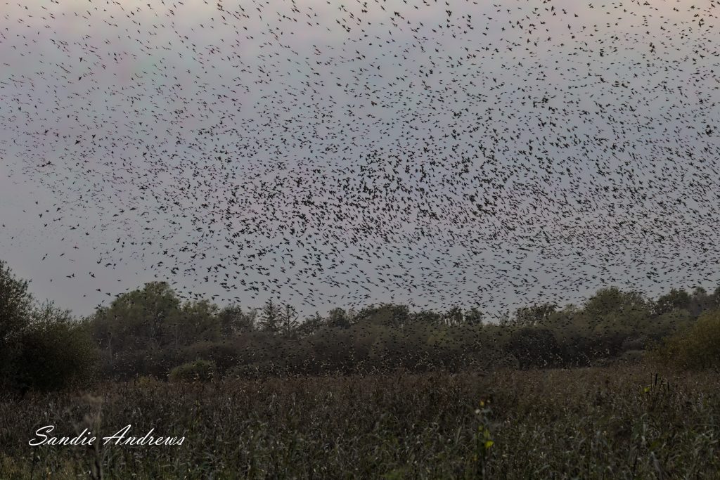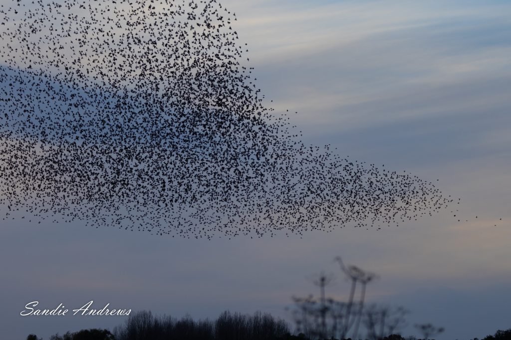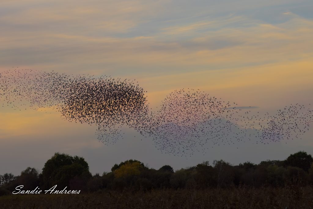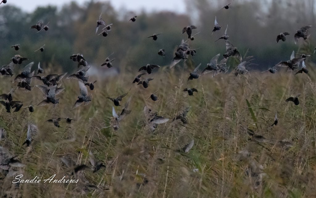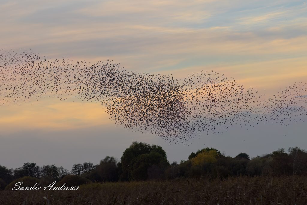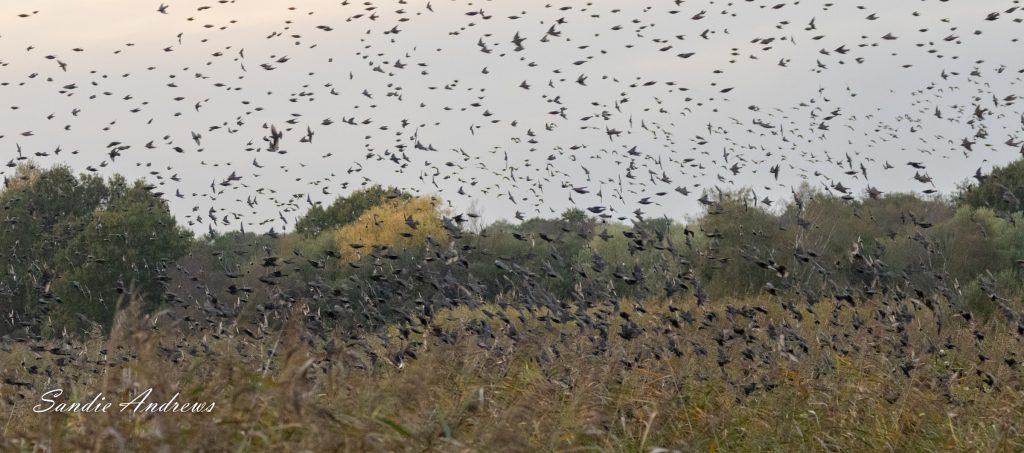 All of the above images were taken on the Somerset Levels in early November 2023, prior to the huge influx of starling expected in December. Apparently, each starling instinctively monitors the trajectories of 7 of the nearest birds so that it can adjust its own trajectory. Looking at these close up pictures, I don’t think they always get it right!