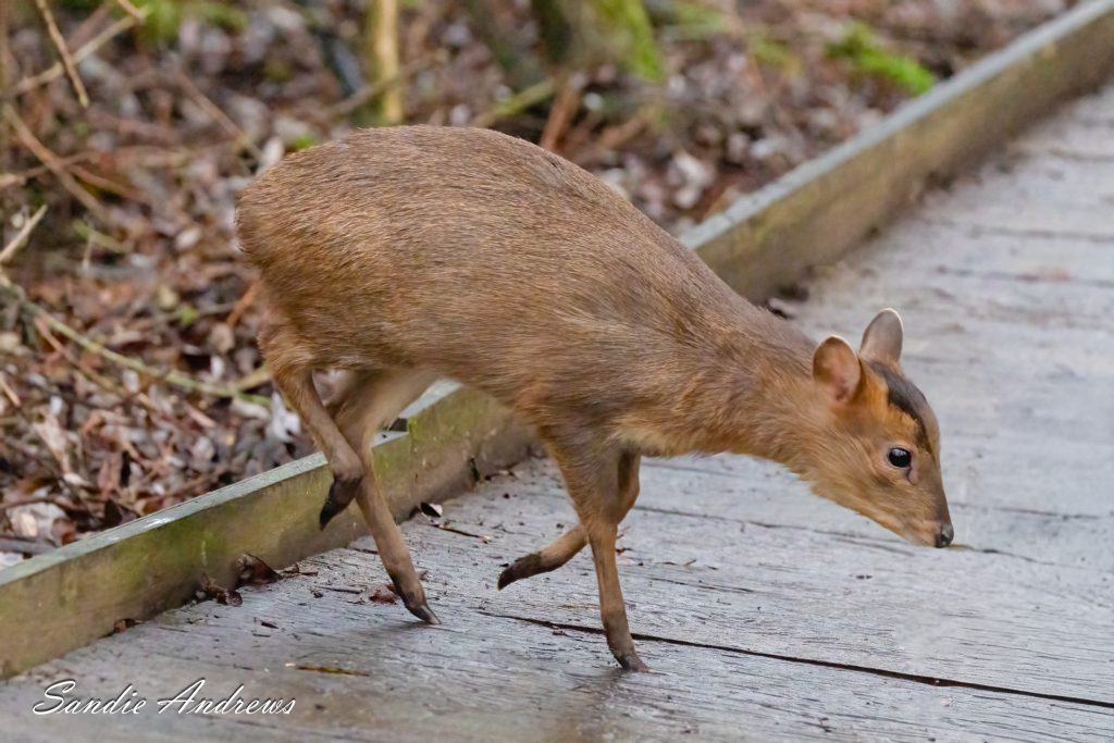 What a fabulous day, sun dominating the sky, just a little wind and birds, lots and lots of birds. This beautiful Muntjac quietly walked across the path just feet in front of us.